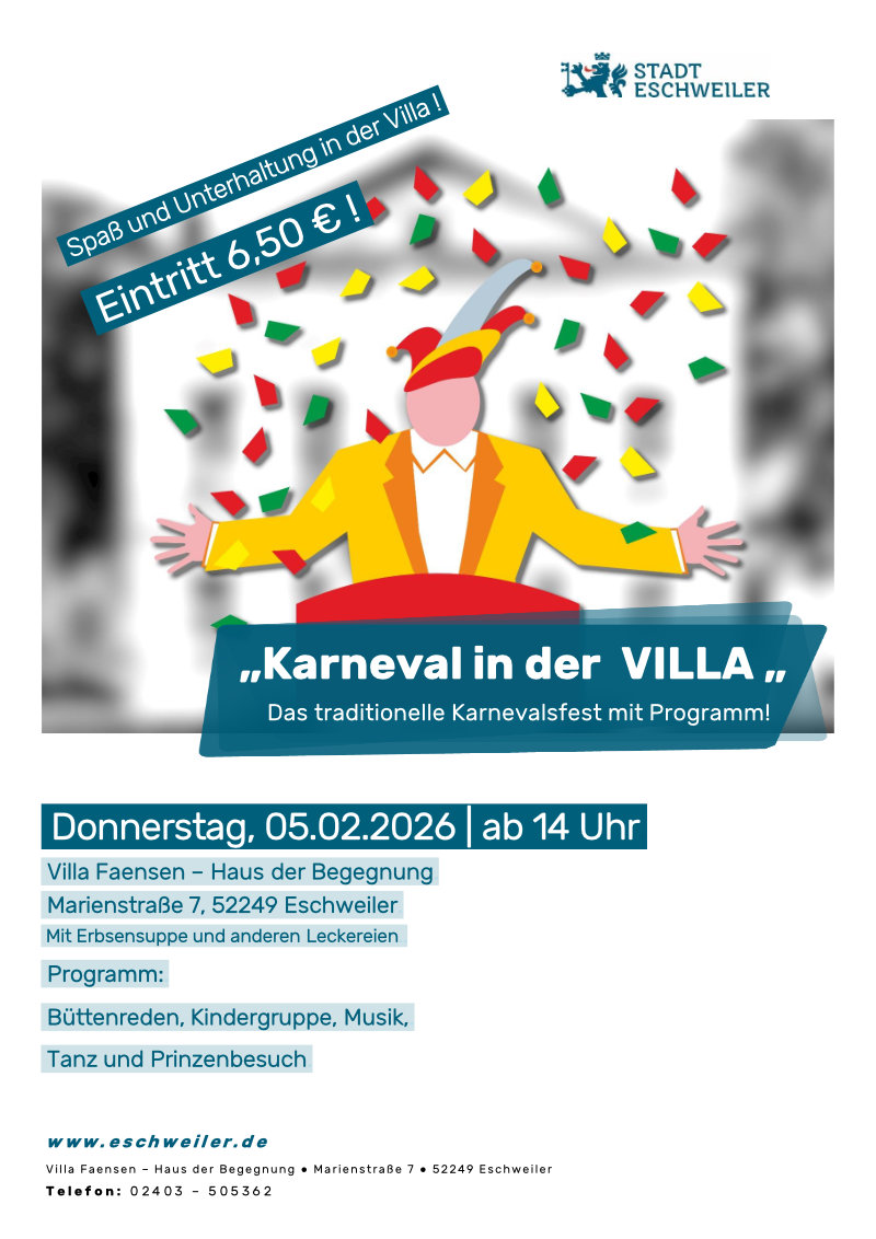 Donnerstag, 05. Februar 2026 ab 13:30 bis ca. 17:30 Uhr in der Villa Faensen - Haus der Begegnung